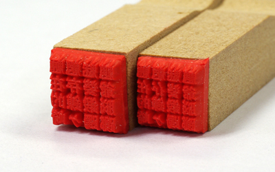 その結果、耐久性にも優れ精度が非常に高いゴム印となります。