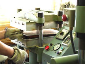 それに高圧のプレスで圧力を加える事で、ゴムを溶かして流し込み原版の隅々まで均一に行き渡らせます。