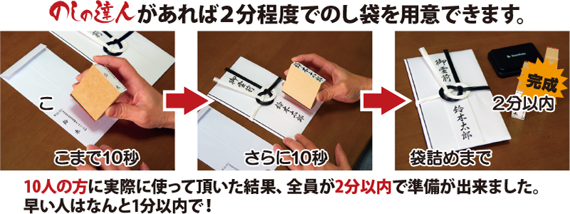 のしの達人は、100円ショップ・文具店で簡単に買える既製品とは違い、 注文を受けてからお作りする完全オーダーメイドの商品となります。